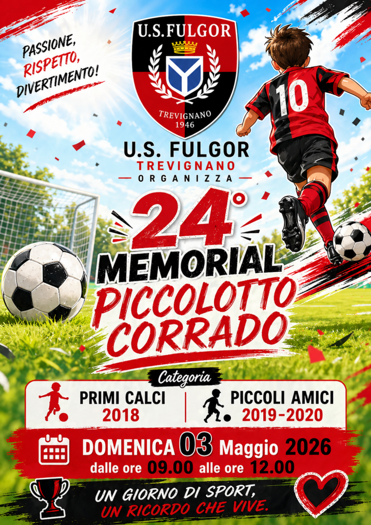 Condividi: Condividi su X (Si apre in una nuova finestra) X Condividi su Facebook (Si apre in una nuova finestra) Facebook Mi piace Caricamento... Correlati 24° memorial Corrado PICCOLOTTO 30.04.2026 / fulgortrevignano / Lascia un commento